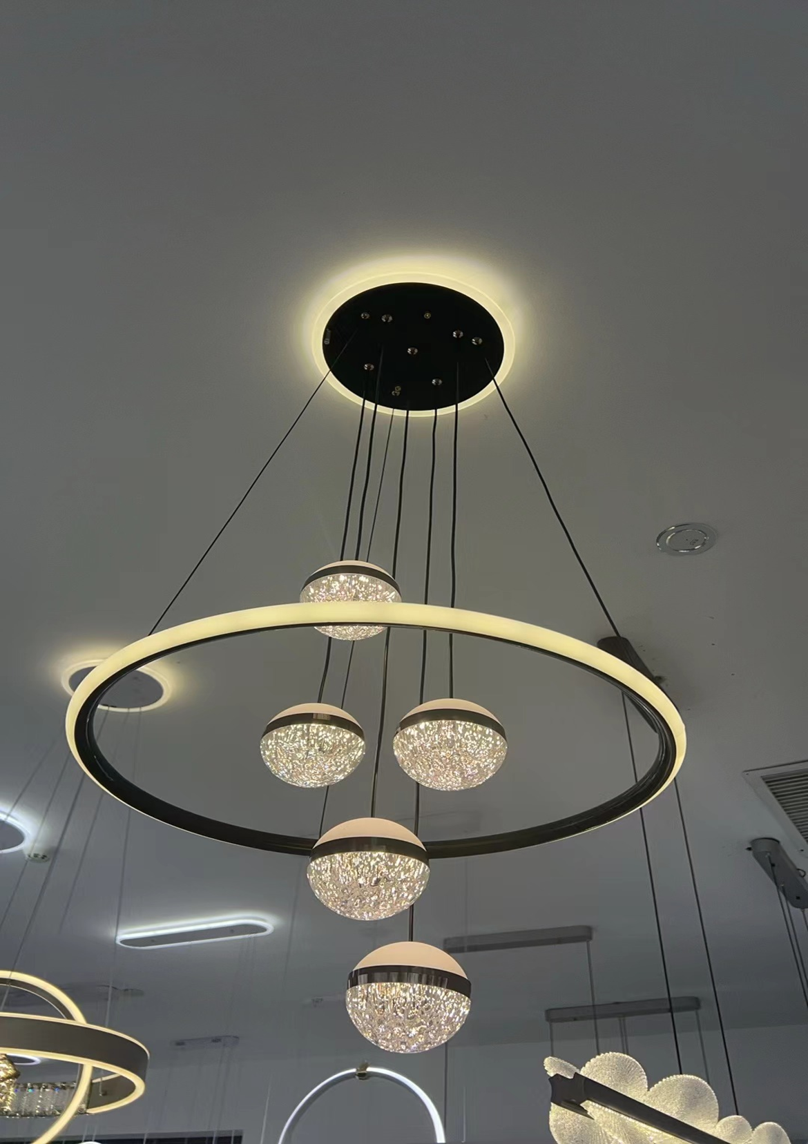Illuminate your space with enchanting elegance using this LED Ring Light adorned with Multiple Crystal Balls. The circular LED frame emits a soft, ambient glow, while suspended crystal spheres catch and refract the light, casting shimmering reflections and rainbow prisms around the room. Each crystal ball is precision-cut and evenly spaced along the inner or outer perimeter of the ring, creating a balanced and luxurious aesthetic.